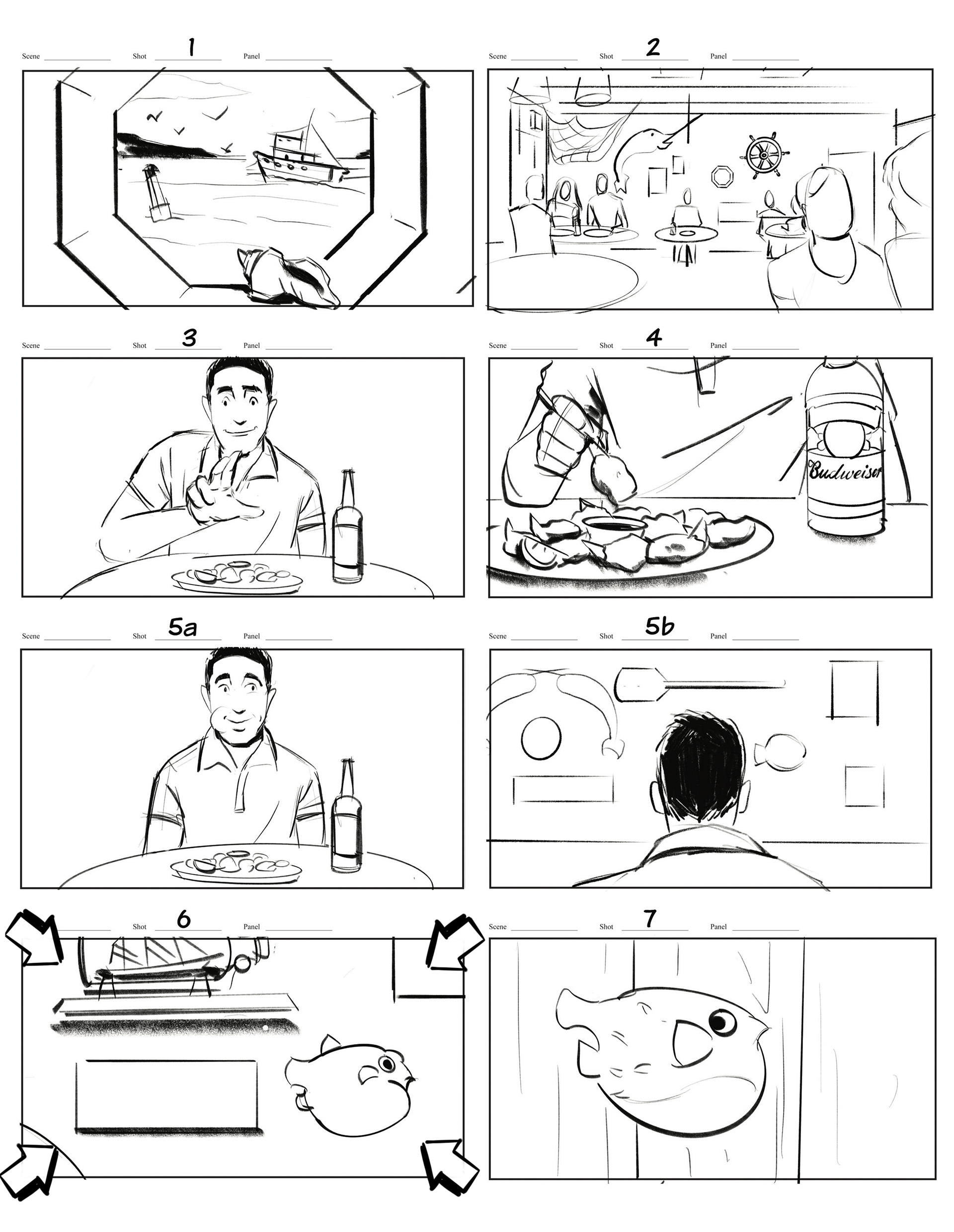 Storyboard for Seapak Budweiser Shrimp and Crab Cakes commercial